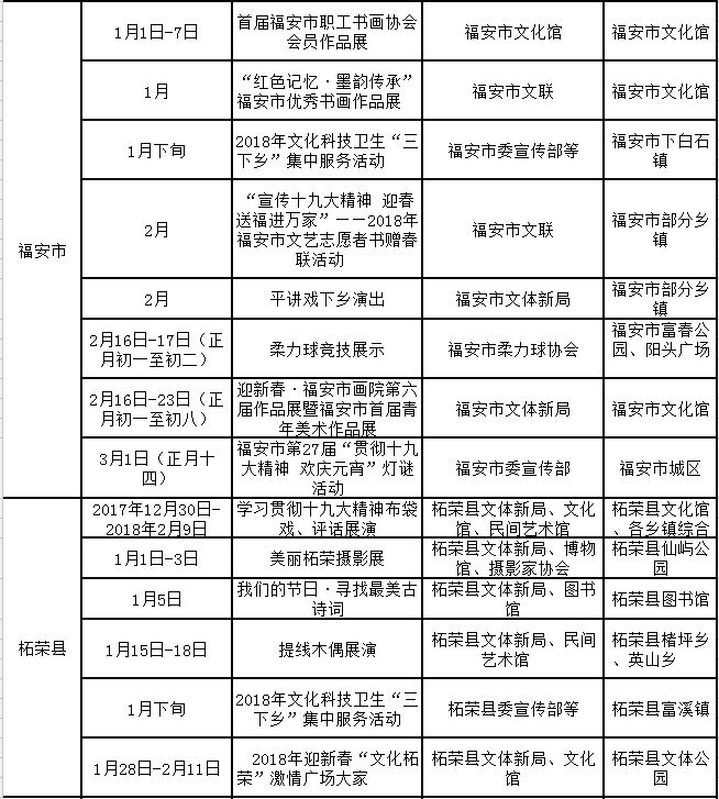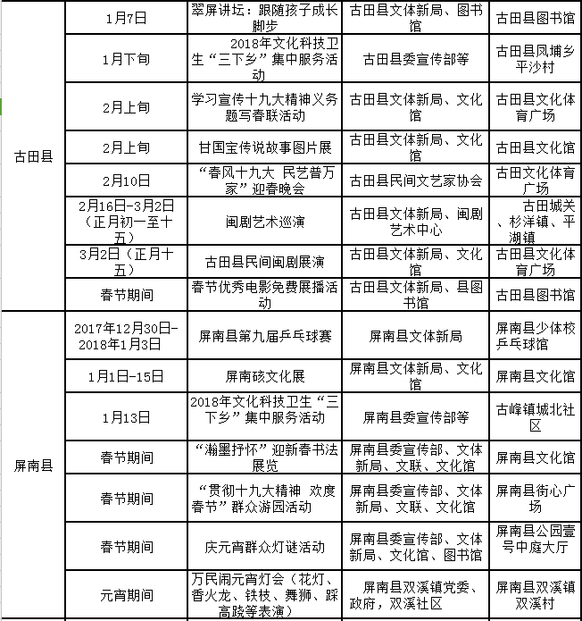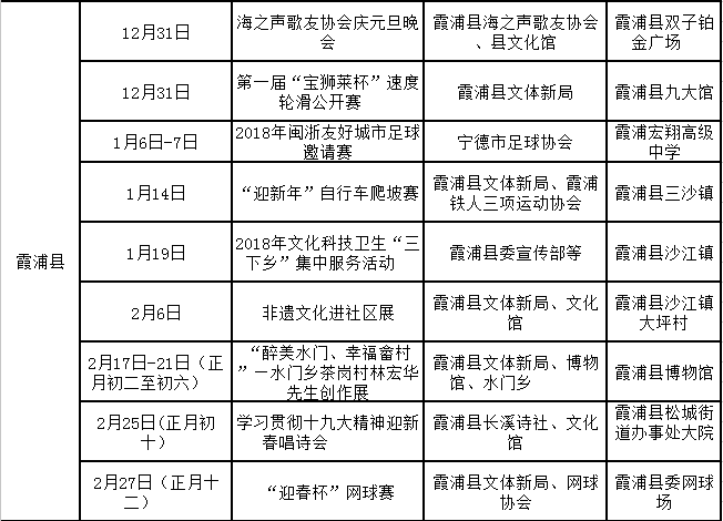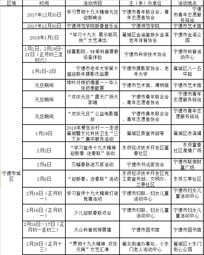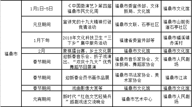 【娱在闽东】宁德市2018年元旦、春节期间群众文化活动一览表
