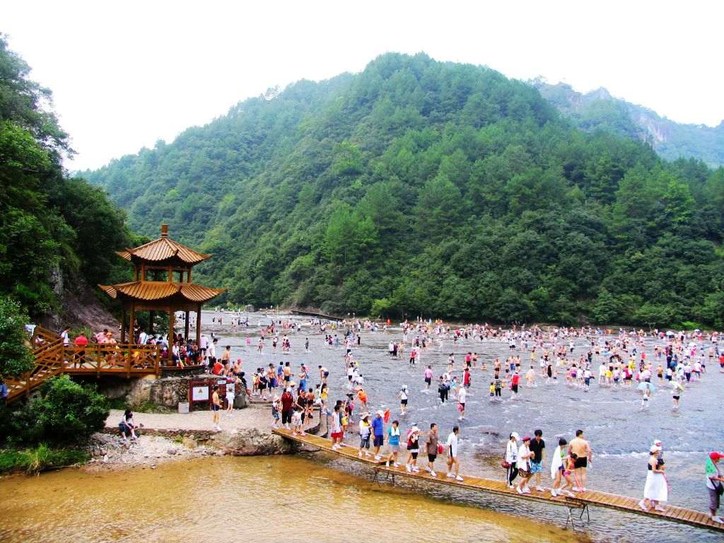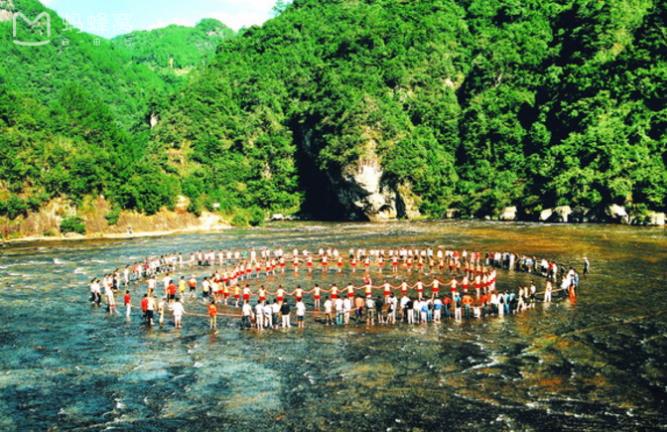 佛法无边,回头是岸,白水洋成为世人惊回首青山真水之岸,成为讲究天地人合一的瑜珈户外拓展基地,成为世界级精美赛事的归宿地。水智于无争,智于无私,智于无分别心。白水洋的水以能亲能近,能濯缨去燥,去暑得爽。亲近他得一身清爽便明心鉴志,再看周边风景,则心神宁静,想象万千。猴王望月、神龙吸水、水族拜观音、老虎观瀑、智脱纱帽……无不维妙。