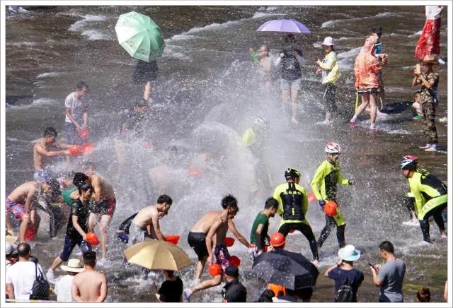 白水洋河床是一整块石面,略有凹凸,却不锥脚,光滑的表面蹭得你浑身痒痒。在钢筋混泥土丛林中呆久的人们,视觉神经被棱角刺得有些麻木,身体的关节被平板路慰帖得缺乏活络。到了这里,踩在这样的石床上,足下摩挲的质感柔柔的、嫩嫩的,直抵四肢百骸,郁积和残留顿时散作流动的热量,融入水的清凉世界。代谢逐渐加速,青春又怎能不撼动脸颊?