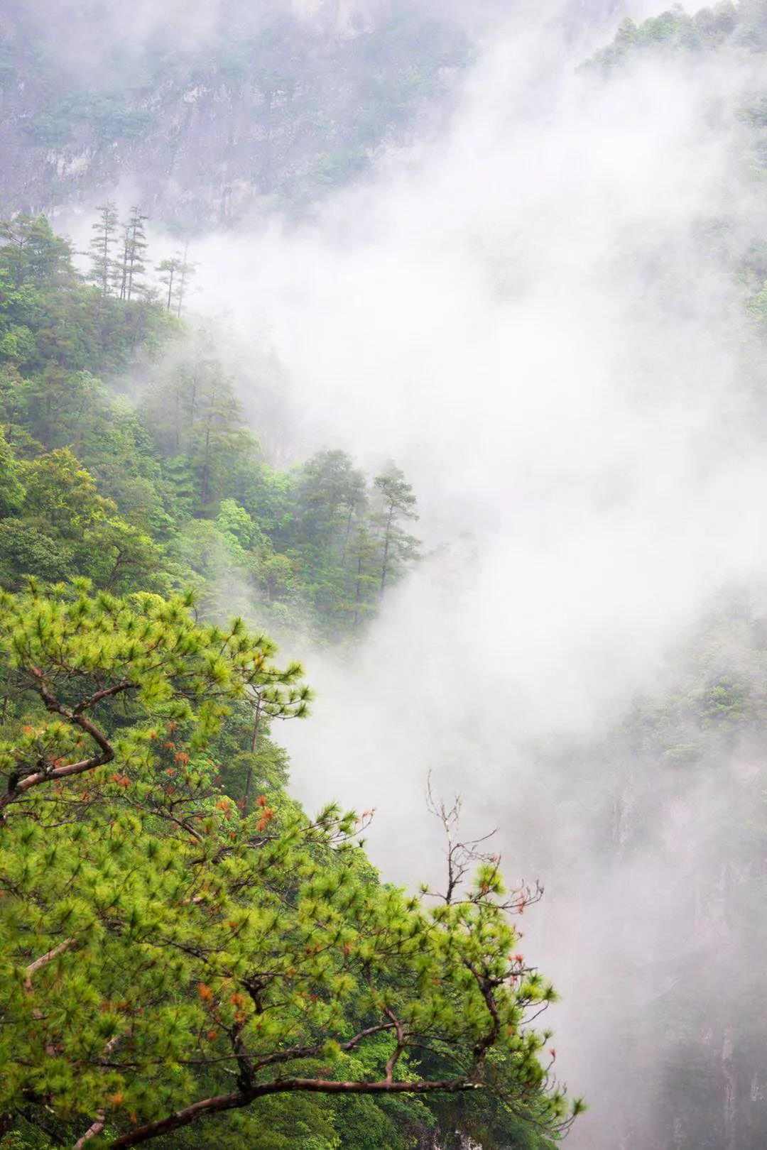 烟雾缭绕,自成一景,犹如雨幕似轻纱笼罩,山水朦胧,青烟素裹,整个鸳鸯溪大峡谷如同在仙境之中一般,情意绵绵,细雨菲菲,侧耳倾听大自然传来的回响之声,细细品味山水烟雨朦胧之美,淡淡思绪如同在这烟雾中飘纱挥舞,用心倾听,用心感受,幽幽传来的鸳鸯溪传说故事在整个山谷中荡气回肠!