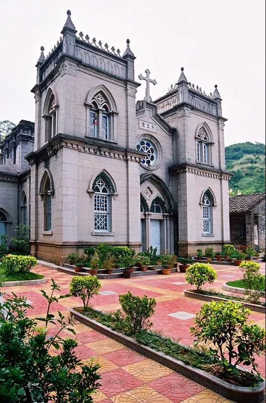 天主教堂,始建于1932年(民国21年),由梵蒂冈罗马教廷拨款修建。坐西向东,高15米,正面三间宽17米,深三间21米。大门正上方树十字架,下书“天主堂”三字,中层为梅花形圆窗。石木钢筋混凝土混合结构,人字形屋架,檩椽木构,天篷穹窿式,左右两侧共12窗,后厅四方顶,大门两侧置抱鼓石一对,建筑面积600平方米,为15世纪文艺复兴时期西班牙哥特式建筑风格。1996年重新装修。教堂右侧有聚教楼一栋,为神职人员住处。