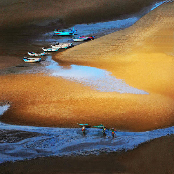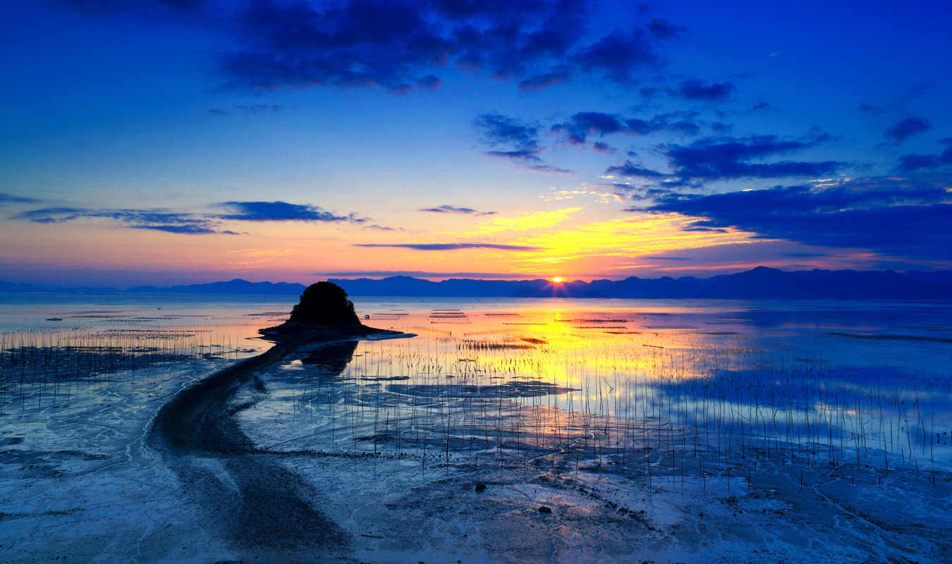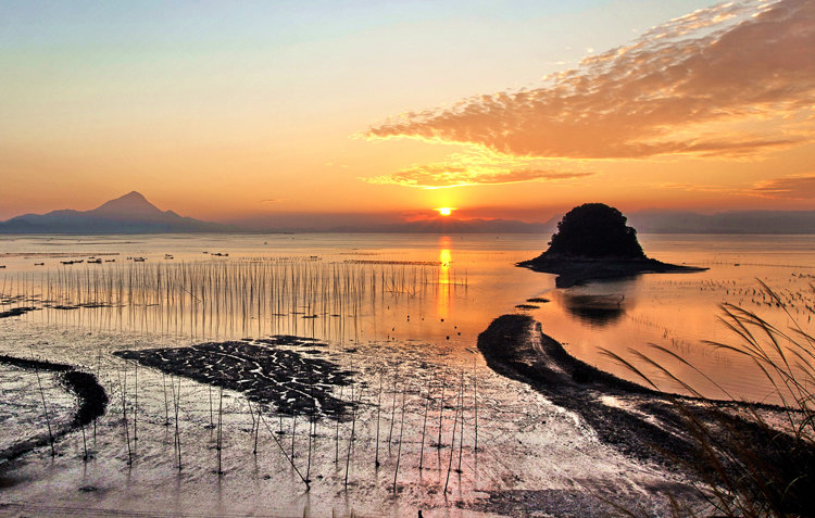 霞浦这么快就变成了“滩涂摄影天堂”和“休闲度假胜地”,这次去之前还真有点不敢相信。一下高铁,县委宣传部长周平,递过来一部摄影画册,图片呈现的海岸与滩涂,四季不同,晨昏有别,漂亮得令人着迷。尤其是天朗气清日子拍的朝霞或日落,平时看似色彩单调的沙滩,会突然变幻出亮金、浅黄、橘红、火红、嫩绿、湖蓝、黄绿等几十种颜色,鲜艳夺目。
