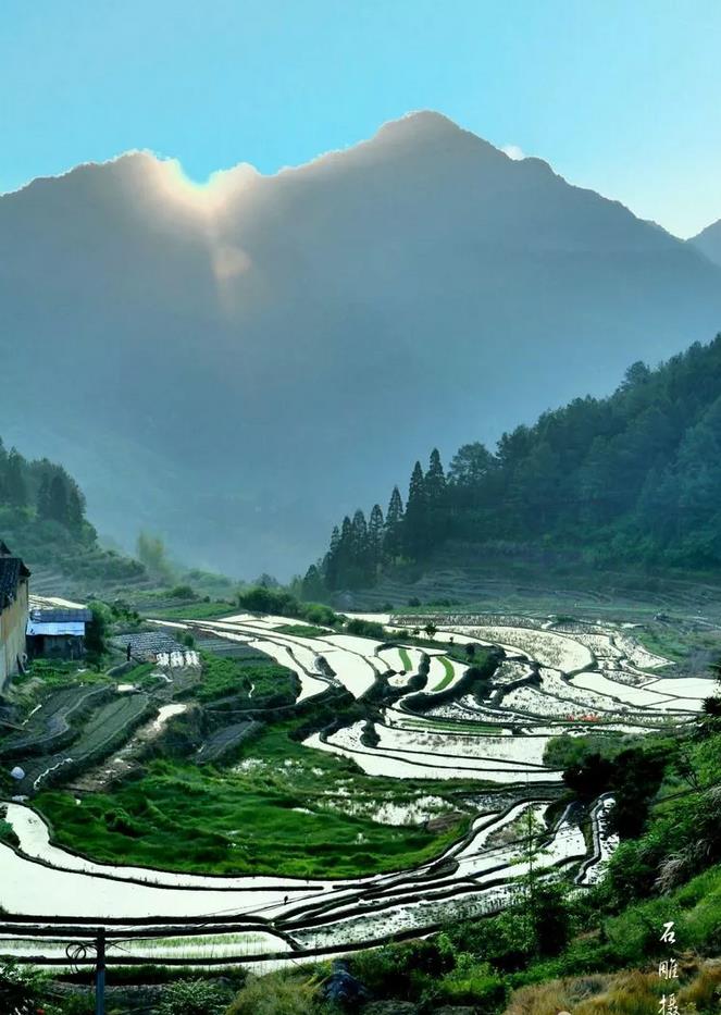 人类择水而居,村庄依山傍水。山,不论高耸巍峨,还是低矮绵柔,背靠青山好住家;水,为江也好,为溪河亦佳,实在不行,好歹有条山坑小涧也成。因此,山环水绕,山清水秀是我们山区所有村庄的寻常风景。好在这里无处不山,无山不秀,因此,祖宗择地拓基建村,首要考虑的是水。