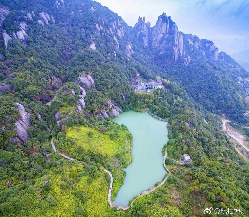 九鲤湖是太姥山最美的湖。影影绰绰的群山就像是一个睡意未消的仙女,披着蝉翼般的薄纱,脉脉含情,凝眸不语。九鲤湖的周围是连绵不断的山峰。湖水碧绿,清澈见底。无风的时候,水平如镜,朵朵白云,青青山影倒映于湖面,山光水色,融为一体。大大小小的鱼儿在水中穿梭,好像是在崇山、白云之间游动,使人仿佛置身于仙地。