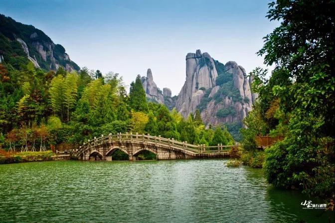 一座座拔地而起的石峰,似玉笋瑶簪,耸立无际,而在陀九岭尽头,有石板横跨于深谷之上,下临万丈深渊,为“御风桥”,又名“望仙桥”,对面就是九鲤朝天。过望仙桥,路旁有一大岩石如古代官帽,称“纱帽岩”,帽上刻有二处摩崖石刻。如此有寓意的好景,人间能得几回见呢?山是一部辞典,年轻时读它薄,年长时读它厚。“横看成岭侧成峰,远近高低各不同”,山让人类读了千万年而永远读之不完。山依然那样虚怀若谷,山总是乐于把丰富的宝藏奉献给热爱它的人们。搜寻世上所有的形容词不足以涵括山的睿智。当然,太姥山也不例外。