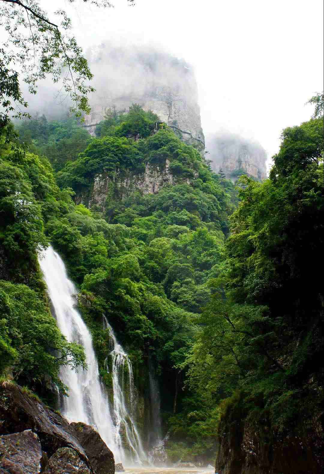 人喜欢看奇异景观,感受奇特感觉,观海时有人喜欢站在乘风破浪的船头,放歌《我爱这蓝色的海洋》;登峰时,喜欢站立峰顶振臂高呼“峰到极顶我为峰”这是梦中能飞的那种感觉。鸳鸯溪绝壁栈道,就是这种感觉的一条通道。深谷云雾都踩脚下,俯瞰间见鸟飞云往,再看鸳鸯溪只不过是一笔勾勒的一条曲曲折折的深蓝线。即使在鸳鸯溪中只是个小男人,此时也有了神仙的飘逸。所以在栈道上会听到许多的放歌声和高呼声。