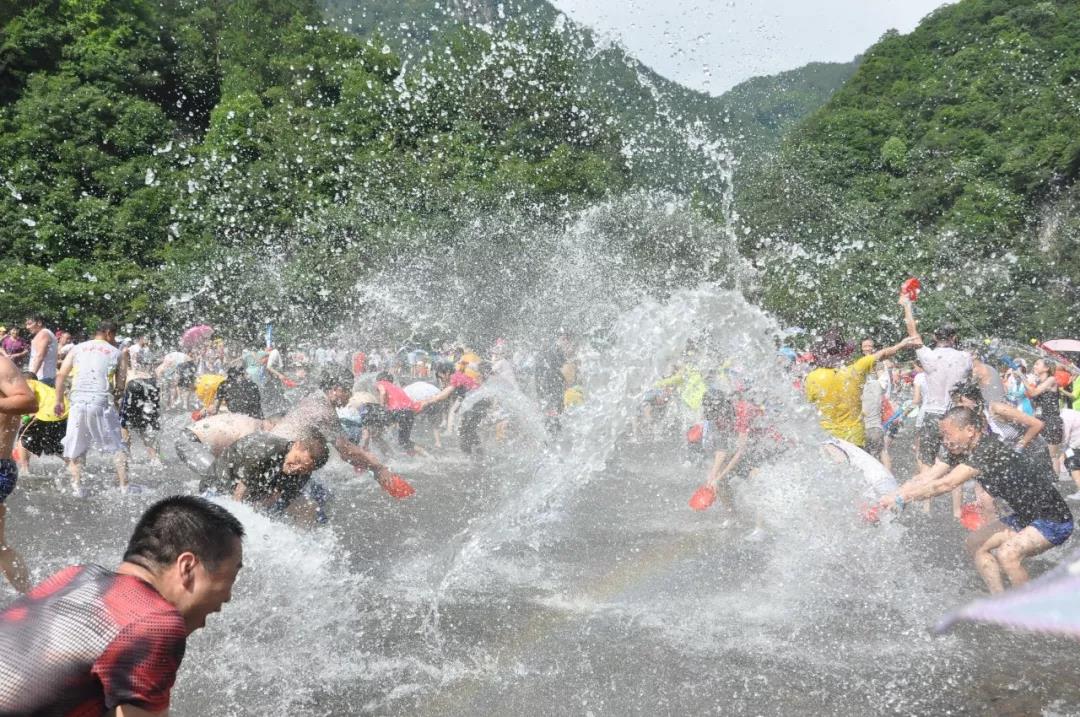在这浓浓野趣的环境中,人也野了。一个个“小绅士”“小淑女”,不顾风度地打着水仗:有的拿着塑料瓶,舀起一瓶水,趁同伴不留神儿,一股脑儿把水浇到她身上;有的手端着水枪,眯缝着眼,瞄准“敌人”准备射击;有的直接用手撂起水向同伴身上泼去;有的干脆脱下拖鞋当勺子,忙不迭地把水泼到别人身上,“噼哩啪啦”的声音夹杂着欢快的笑声响个不停。那情景,绝不亚于傣家的泼水节。原本羞涩的城里姑娘,有的坐在平滑的石头上,双脚用力地拍打着水,溅起了层层水花;有的悠闲地泡在白水洋的“天然浴池”里,有的乐呵呵地在小滑道上自由地滑动,还不时发出爽朗的笑声。一些男青年在女青年背后泼了一大把水,然后又笑嘻嘻地跑了。女青年要“报复”,一齐在男青年背后泼水,把他们浇成“落汤鸡”,这其间也包括平日里文质彬彬的“眼镜族”。“小绅士”“小淑女”、年轻人野是自然的,也有许多年过花甲的老叟,却在冲浪滑道上乐得合不拢嘴,有的老妪在平坦的中洋忘形地跳起“踏水舞”,晶莹的、四处乱溅的水珠象征着她们愉快的心情。他们似乎忘记了自己的年龄,也不在乎什么德高望重,和年轻人打成一片,真是返老还童了……