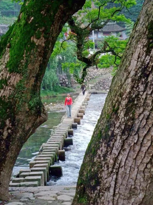 碇步桥,还有个好听的名字:琴桥。石为琴键,水奏和声。这真是个形神到位的名称表述。瞧,古樟树下,琴桥一头,有恋人面水轻拥,而后分开。男的借垂柳为前景定格那一头的心上人。“捋一下散发,看过来,头压低些。”“噢,你真好看!”镜头一端这样引导和点评,那一端是盈然腆笑。然后牵引踩过了桥。数米开外的“状元廊”桥上,一位阿伯抽着烟,憨憨慈慈地看下来,满脸宽仁的笑意。