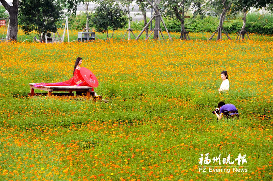 10月:闽江公园北园和南园、金山公园赏木芙蓉,花海公园全园可赏向日葵、孔雀草,花海公园一期主园路可赏美人树。